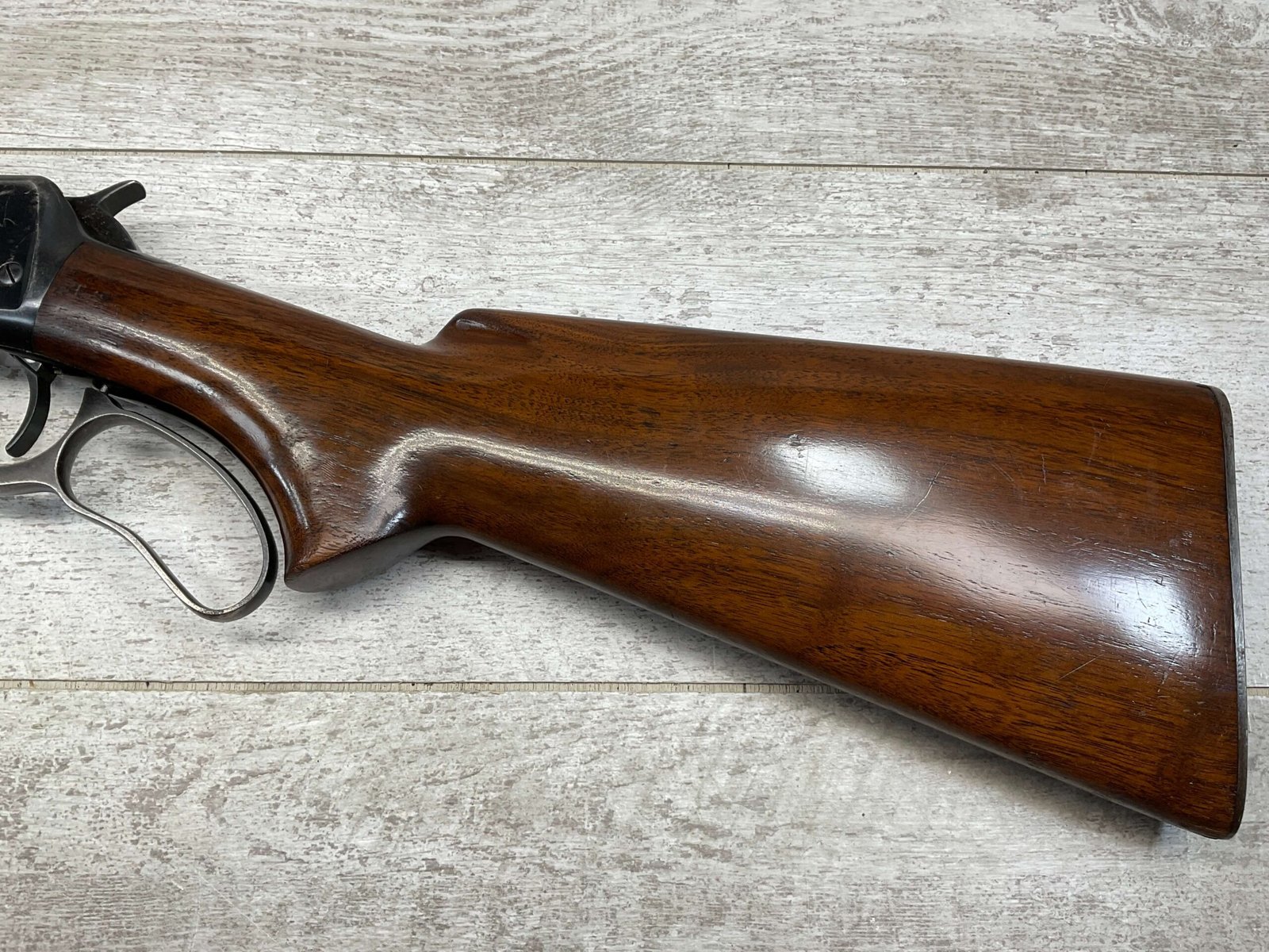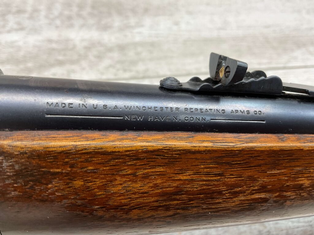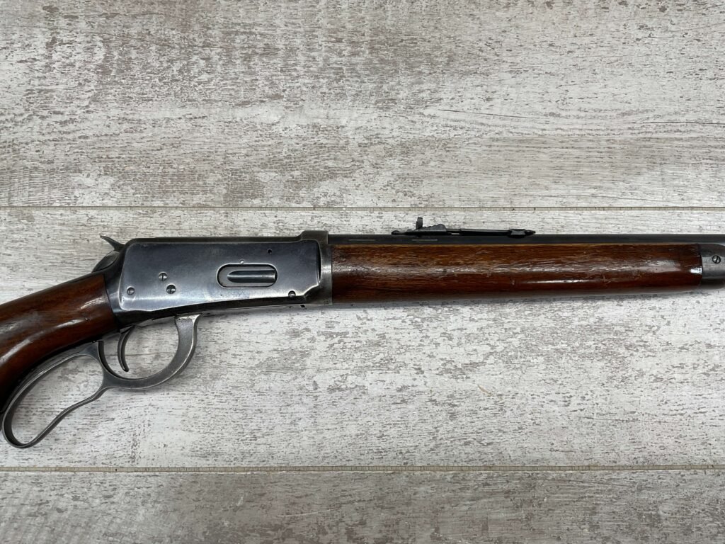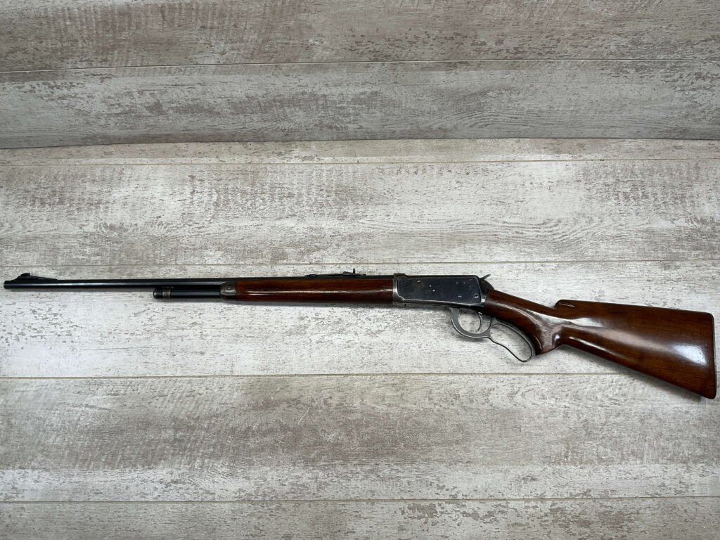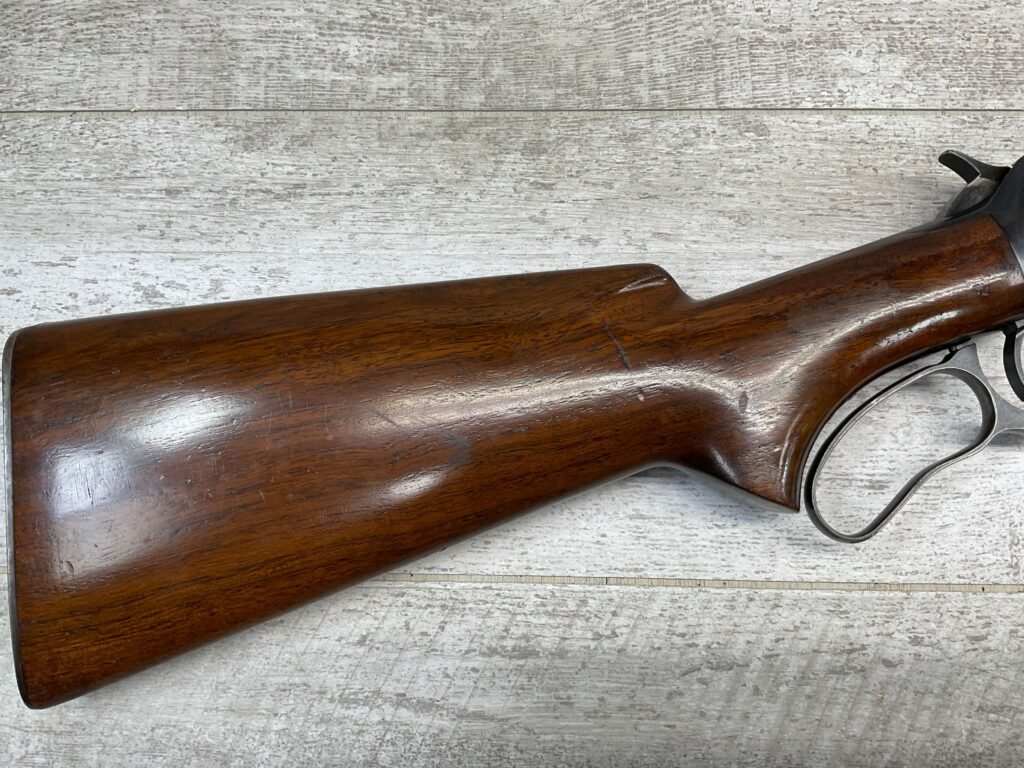 WINCHESTER MODEL 64 32 WS LEVER ACTION RIFLE, 1936 MFR #1116507, 24″ ROUND BARREL, EXC BORE & RIFLING, EXC WALNUT STOCK W/ PISTOL GRIP & SHOTGUN BUTT & METAL PLATE, 90% ORIGINAL BLUE FINISH THROUGHOUT W/ LIGHT WEAR ON RECEIVER FROM USE, 1/2 MAGAZINE TUBE, MARBLES FLAT TOP REAR SIGHT W/ BLADE FRONT, SMOOTH ACTION & C&R ELIGIBLE!!
