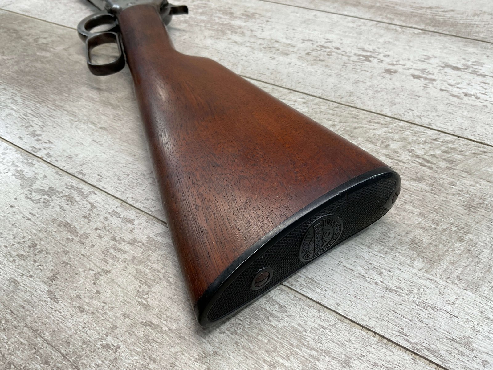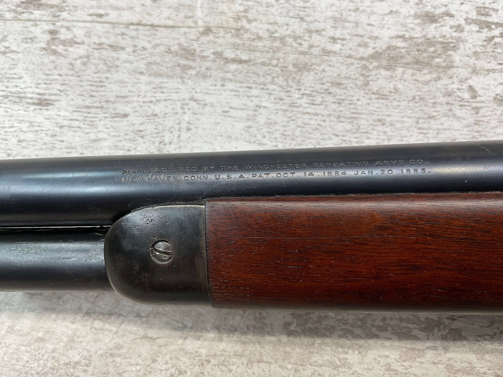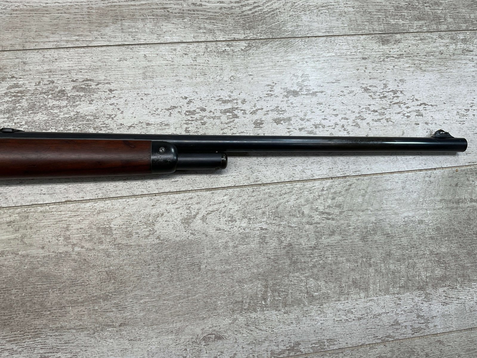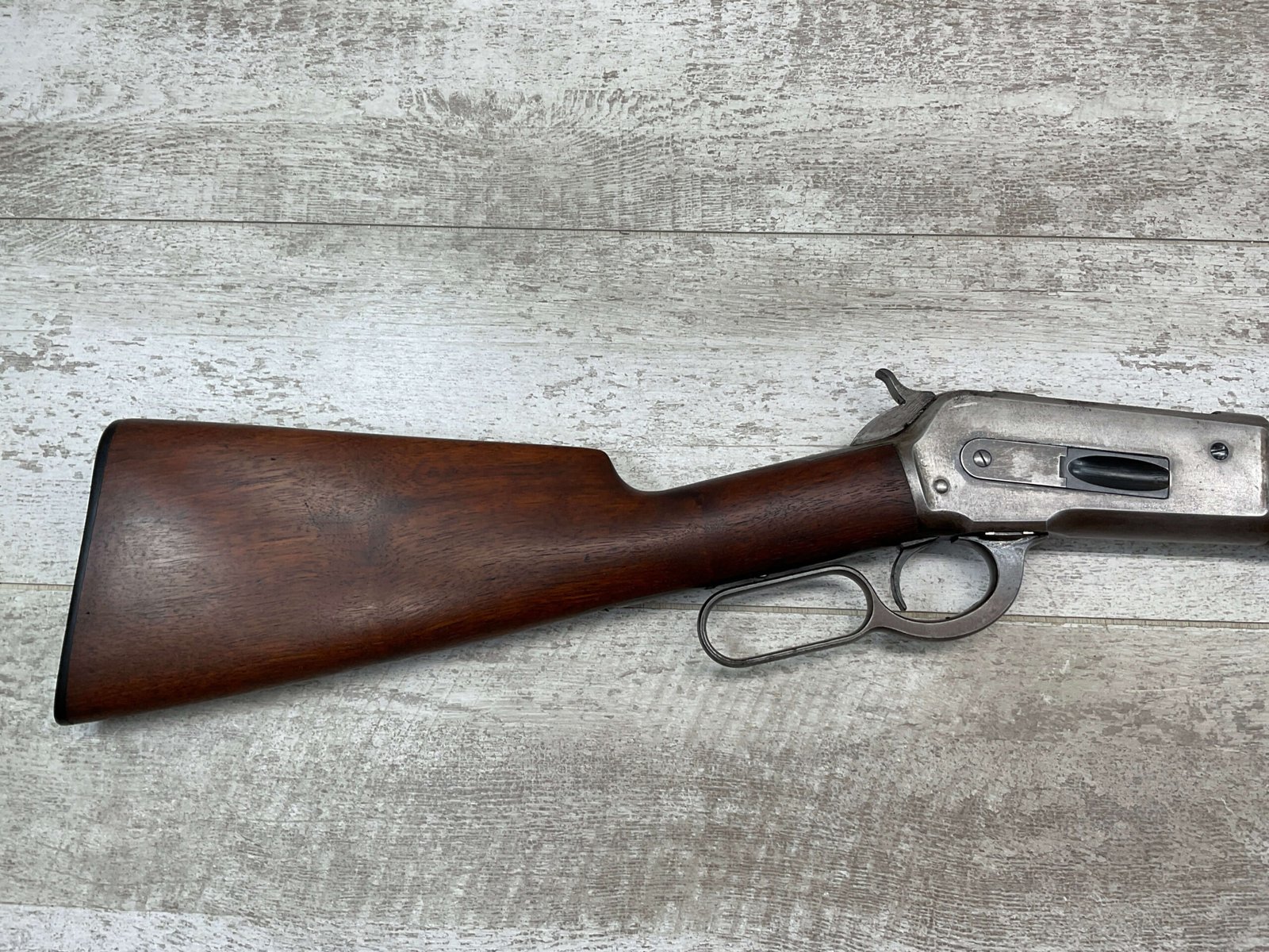 WINCHESTER MODEL 86 .33WCF LEVER ACTION RIFLE, 1911 MFR #151700A, 24″ NICKEL STEEL BARREL, GOOD BORE & RIFLING W/FROSTING IN THE GROOVES, RAISED BLADE FRONT SIGHT, ADJ LADDER REAR SIGHT, EXC WALNUT STOCK, RECEIVER HAS LOST ALL BLUE, BARREL HAS SOME TOUCH UP DONE NEAR FRONT SIGHT AS DID THE END OF THE MAGAZINE TUBE & FRONT CAP, SHOTGUN BUTT PLATE, SMOOTH ACTION
