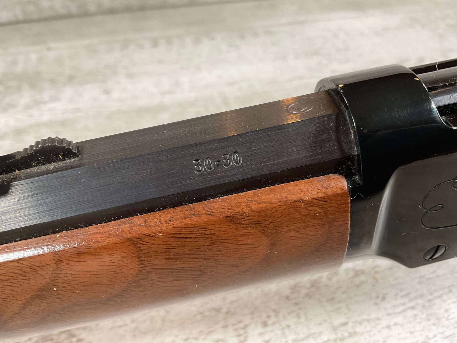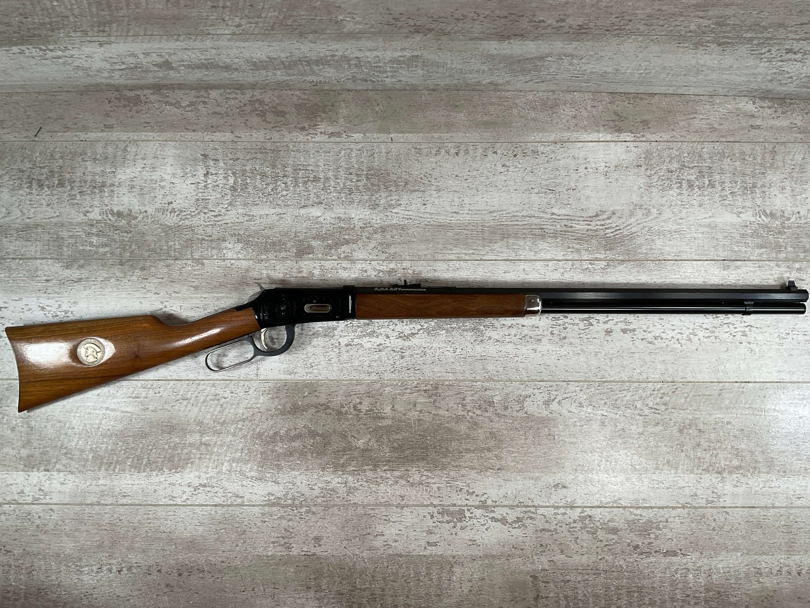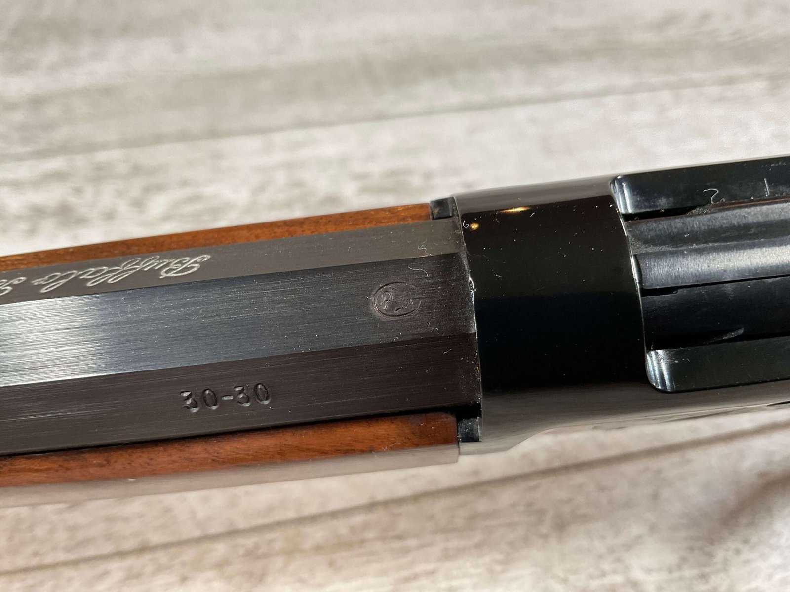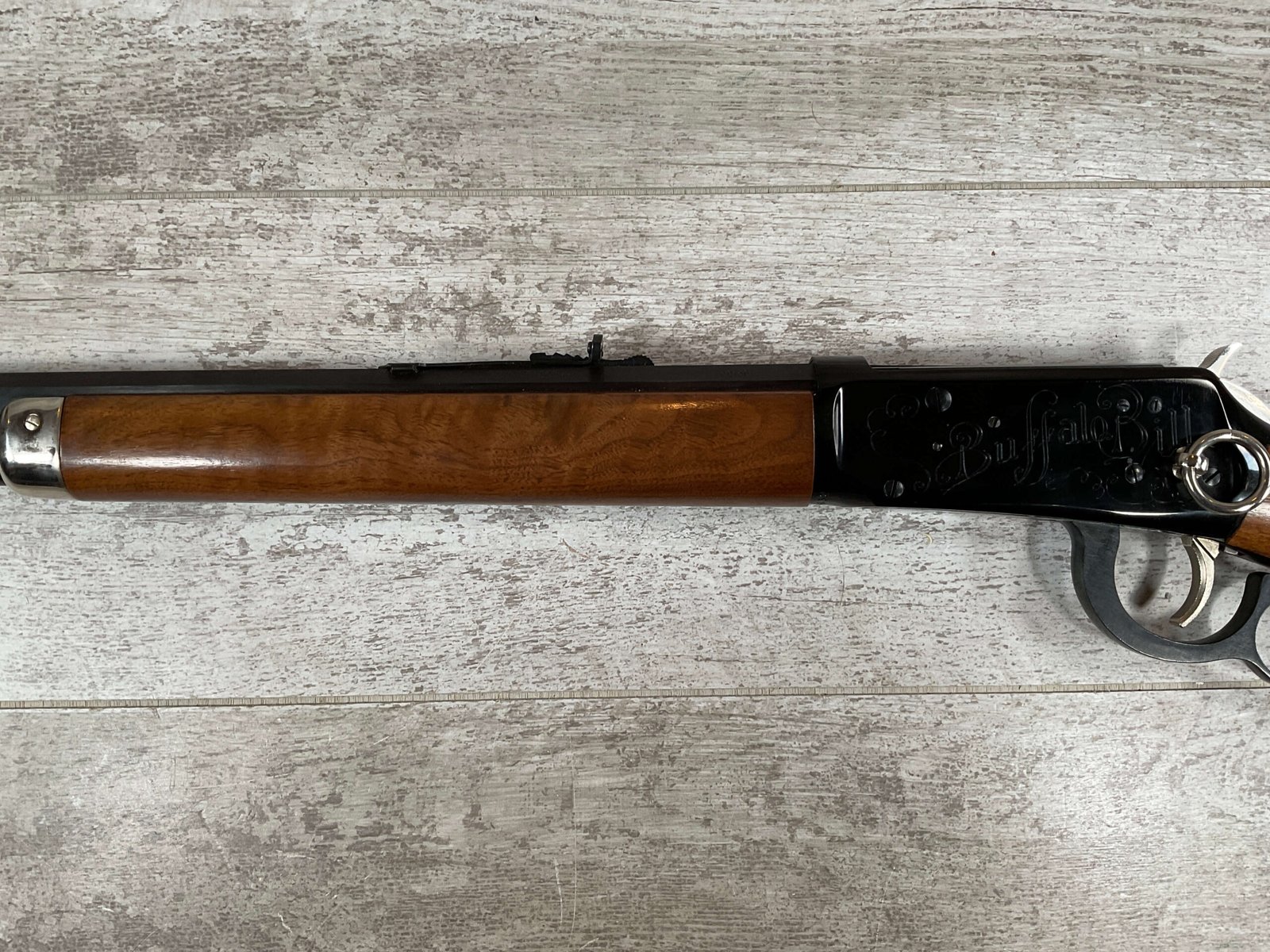 WINCHESTER MODEL 94 “BUFFALO BILL” COMMEMORATIVE .30-30 LEVER ACTION RIFLE #WC26632, LNIB, NEVER FIRED, 20″ OCT BARREL, ENGRAVED RECEIVER, SILVER SADDLE RING/TRIGGER/HAMMER/LOCKING BLOCK/FORENED CAP/BUTTPLATE/LOADING GATE, DELUXE WALNUT STOCK W/MEDALLION INLAID, BOX, EXC BRIGHT & SHINY BORE, EXC OVERALL UNFIRED CONDITION, MINTY