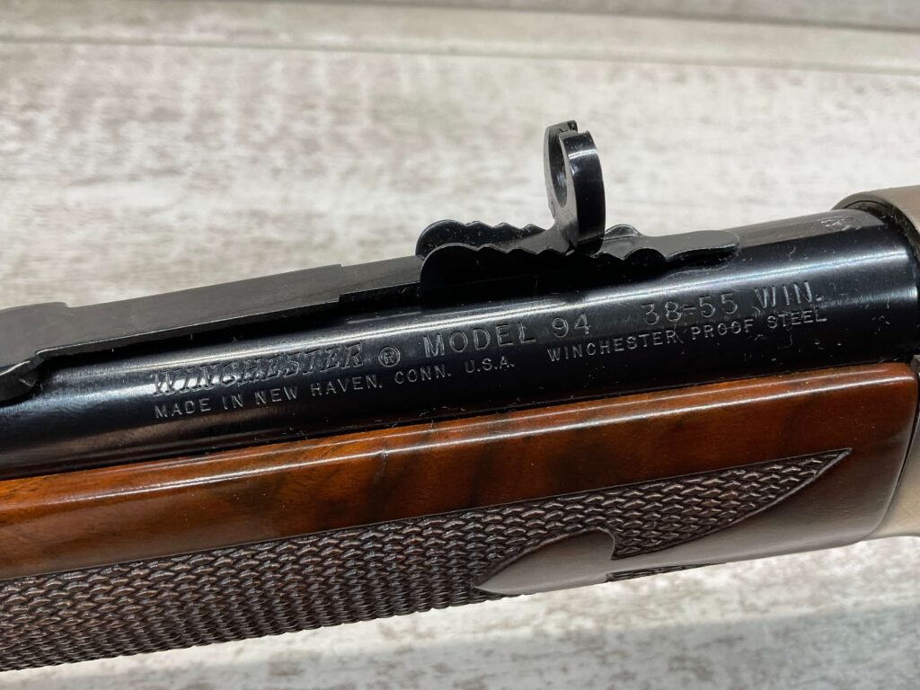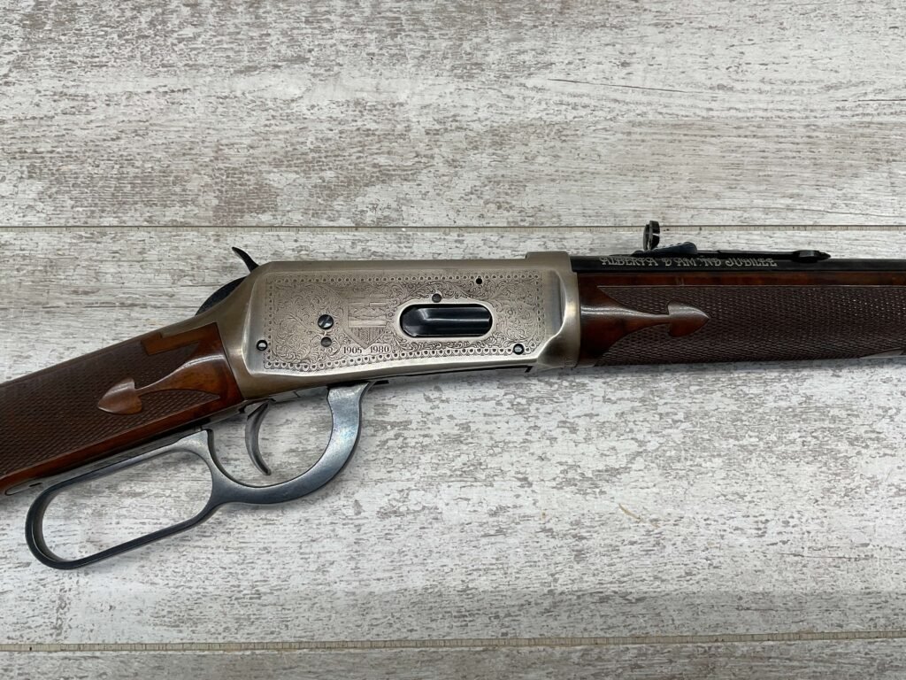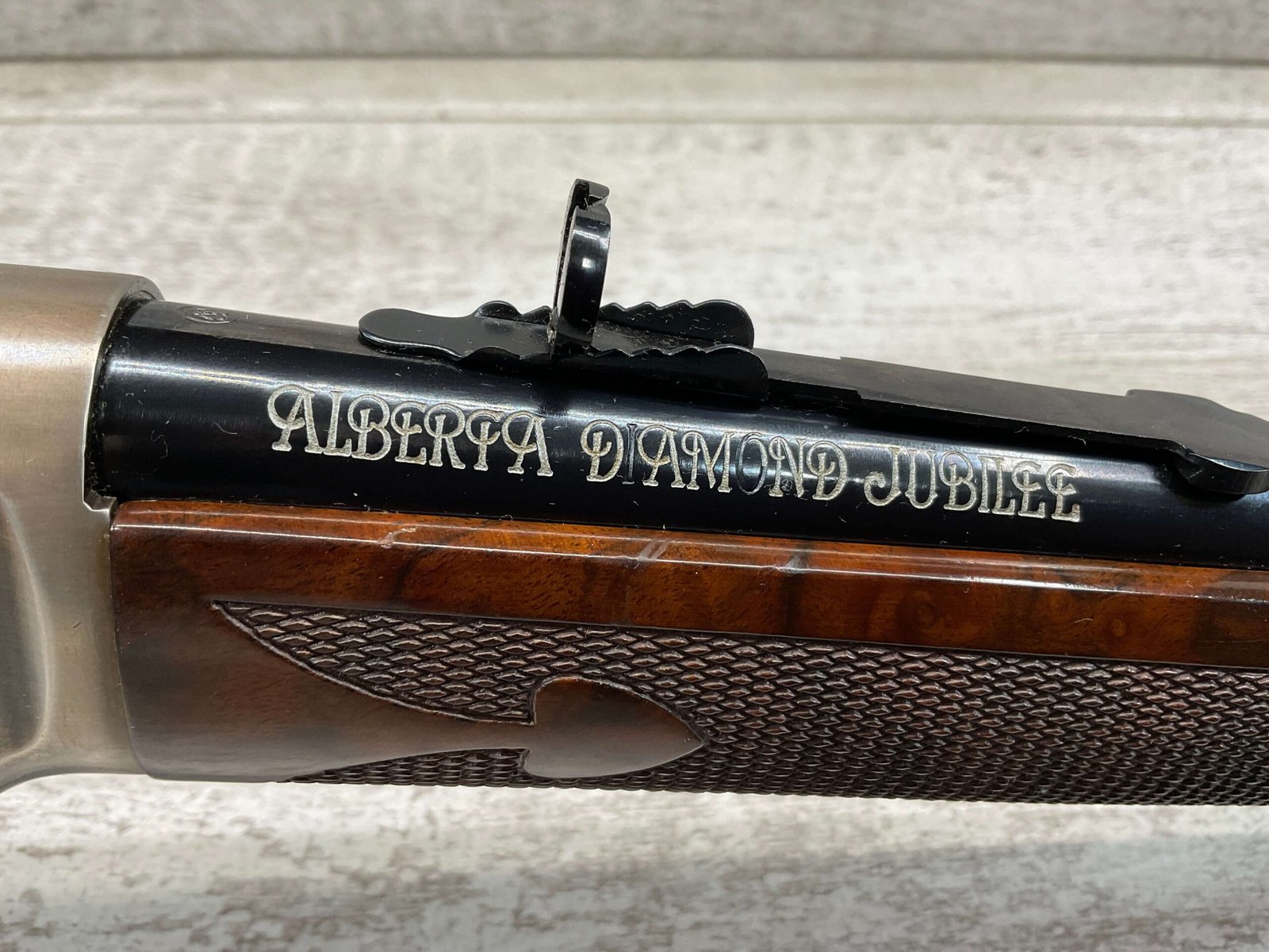 WINCHESTER MODEL 1894 ALBERTA DIAMOND JUBILEE 38-55 LEVER ACTION RIFLE, LNIB / MINTY #ADJ199, 20″ ROUND BARREL, 99%+ FINISH, EXC BOX, EXC / BEAUTIFUL WALNUT CHECKERED STOCK