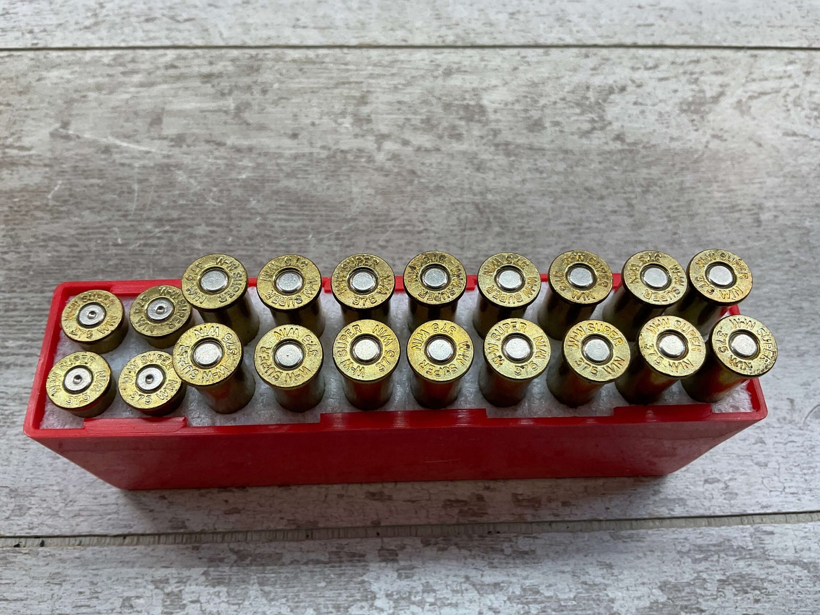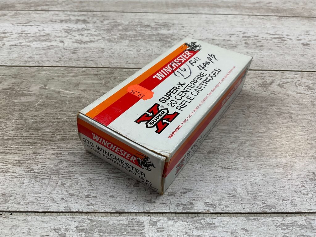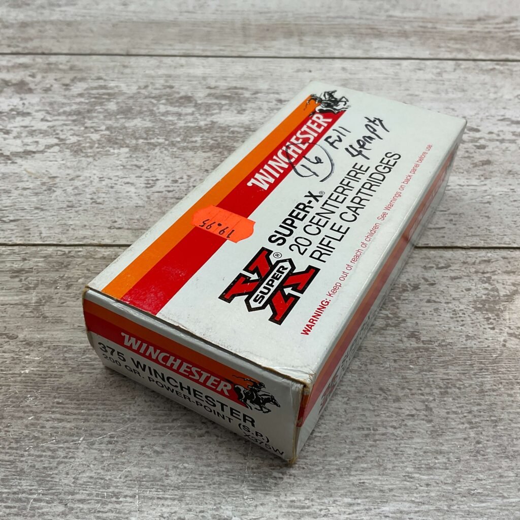 WINCHESTER SUPER X 375 WIN. 200 GRN. SP AMMO, PARTIAL BOX, QTY 16 W/ 4 BRASS