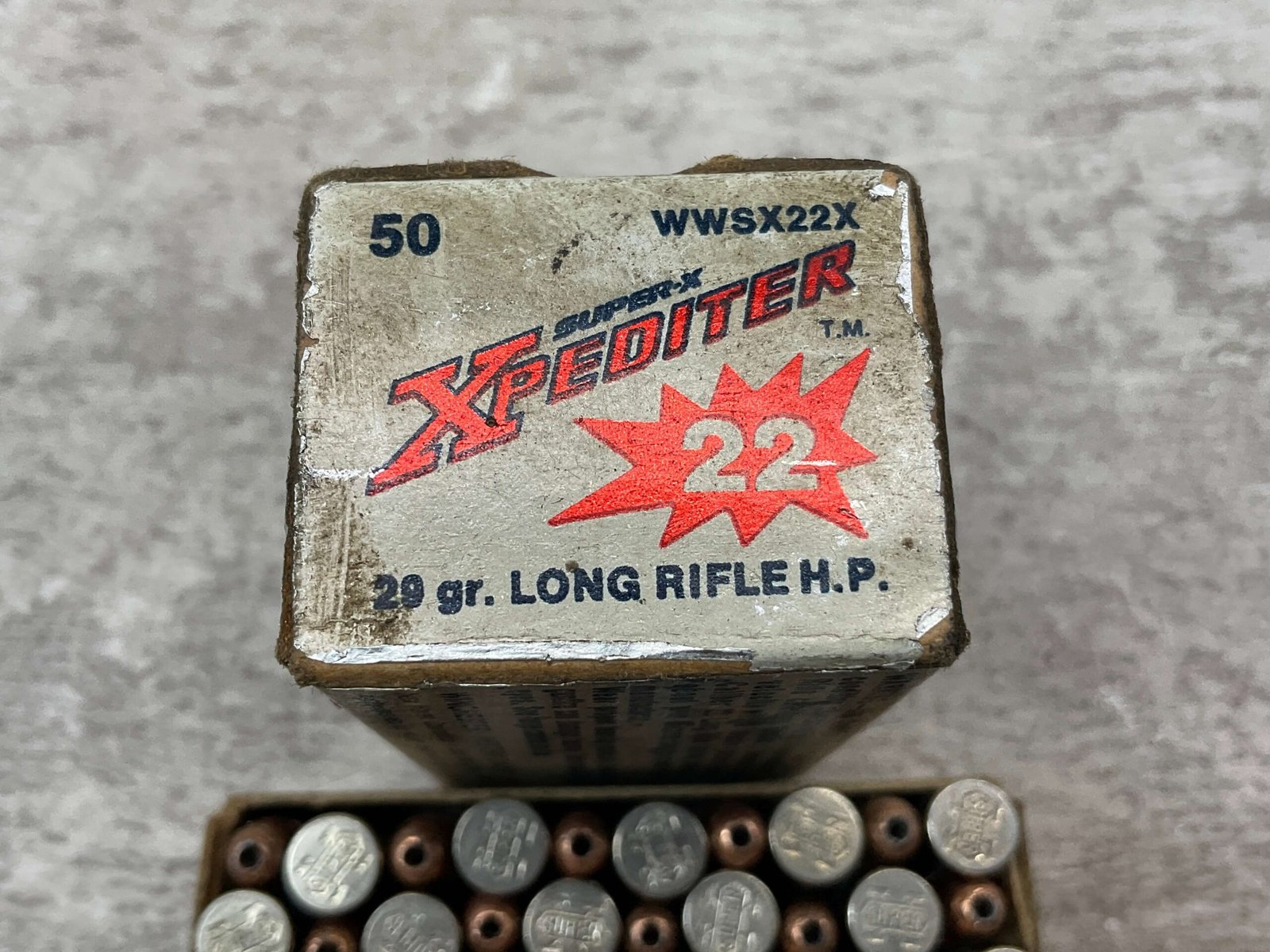 WINCHESTER-WESTERN SUPER-X XPEDITER .22LR HP AMMO, INDEX WWSX22X, FULL BOX, VINTAGE, BOX IS IN GOOD CONDITION WITH SOME DISCOLORATION AND WEAR, BUT IS IN OVERALL GOOD CONDITION AND DISPLAYS WELL.