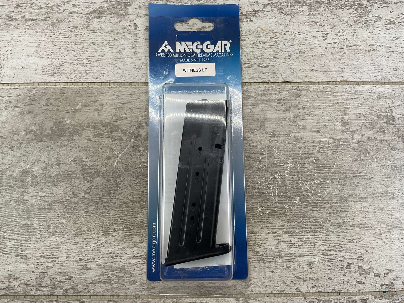 WITNESS 38 SUPER 17 RND MAGAZINE, NEW IN BOX, BLACK FINISH WITH HIGH-IMPACT POLYMER FLOORPLATE. COMPATABLE WITH TANFOGLIO LARGE FRAME PISTOLS