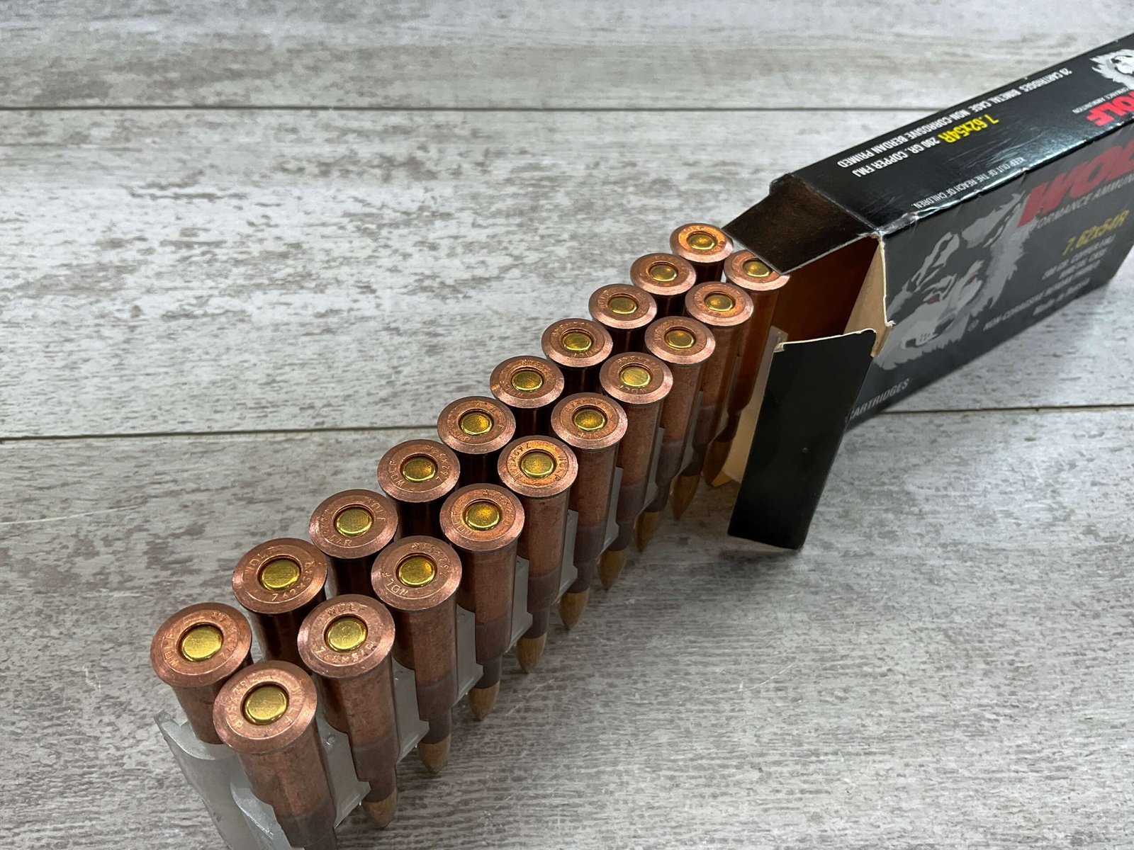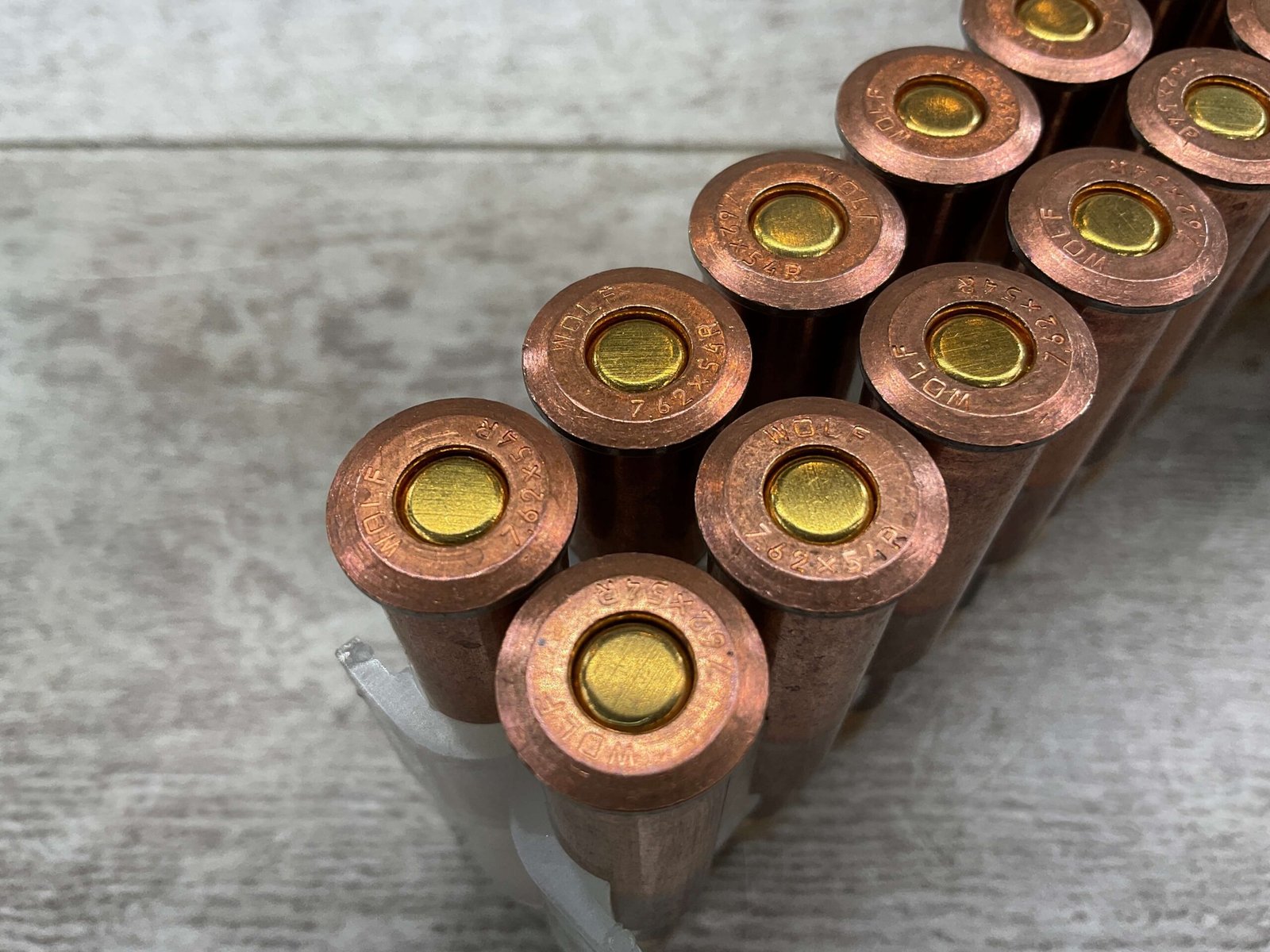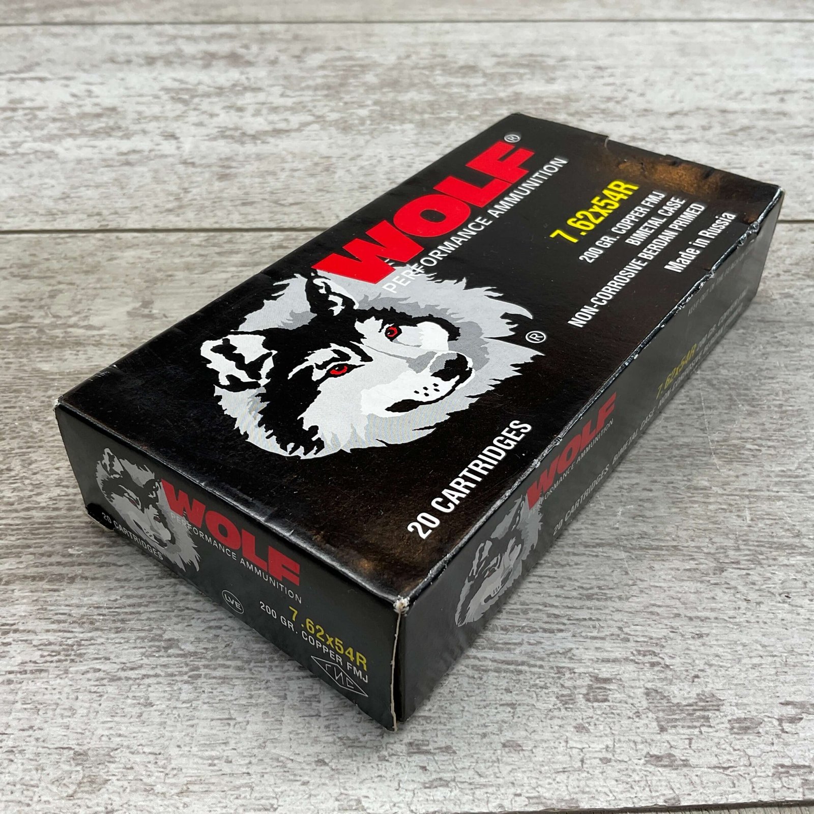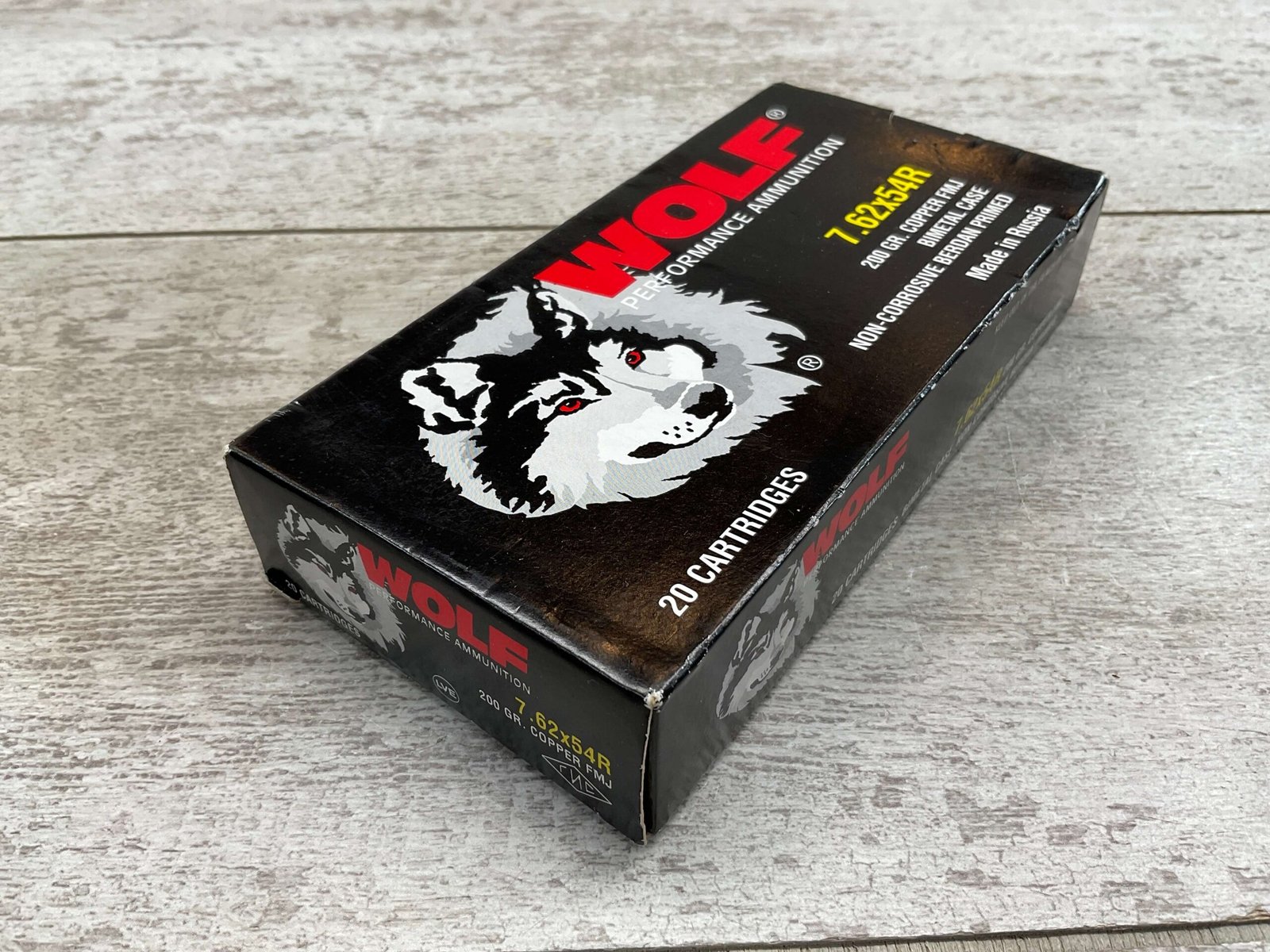 WOLF PERFORMANCE AMMUNITION, 7.62x54R, 200 GR. COPPER, FMJ BIMETAL CASE, MADE IN RUSSIA, NEW FULL BOX.