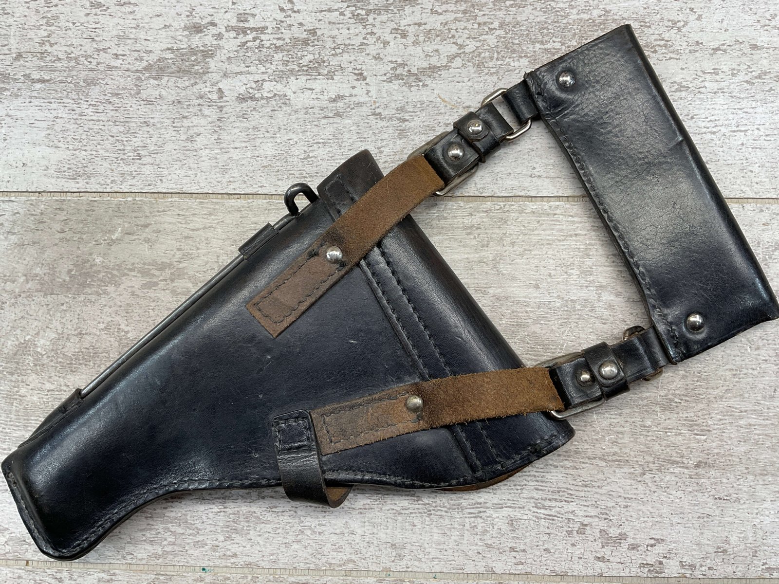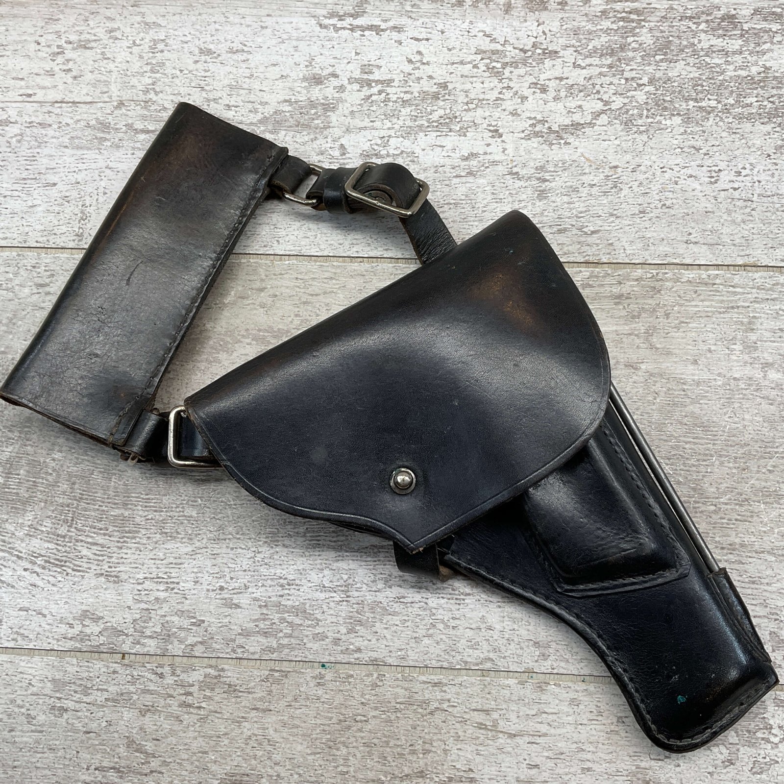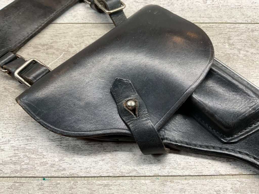 WWII NAVY RUSSIAN TT33 LEATHER PISTOL HOLSTER, CLEANING ROD, FOLD OVER FLAP, SPARE MAG POUCH, EXC STITCHING, DROP BELT LOOP DESIGN, OVERALL EXC CONDITION