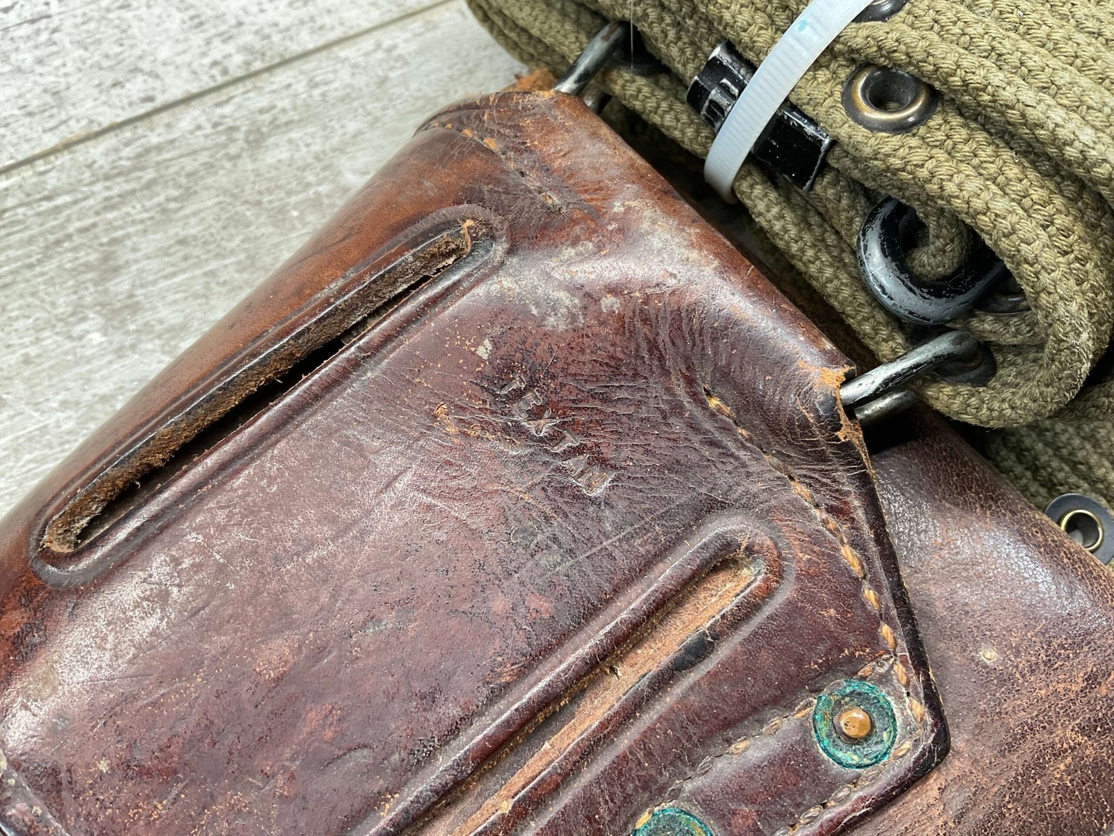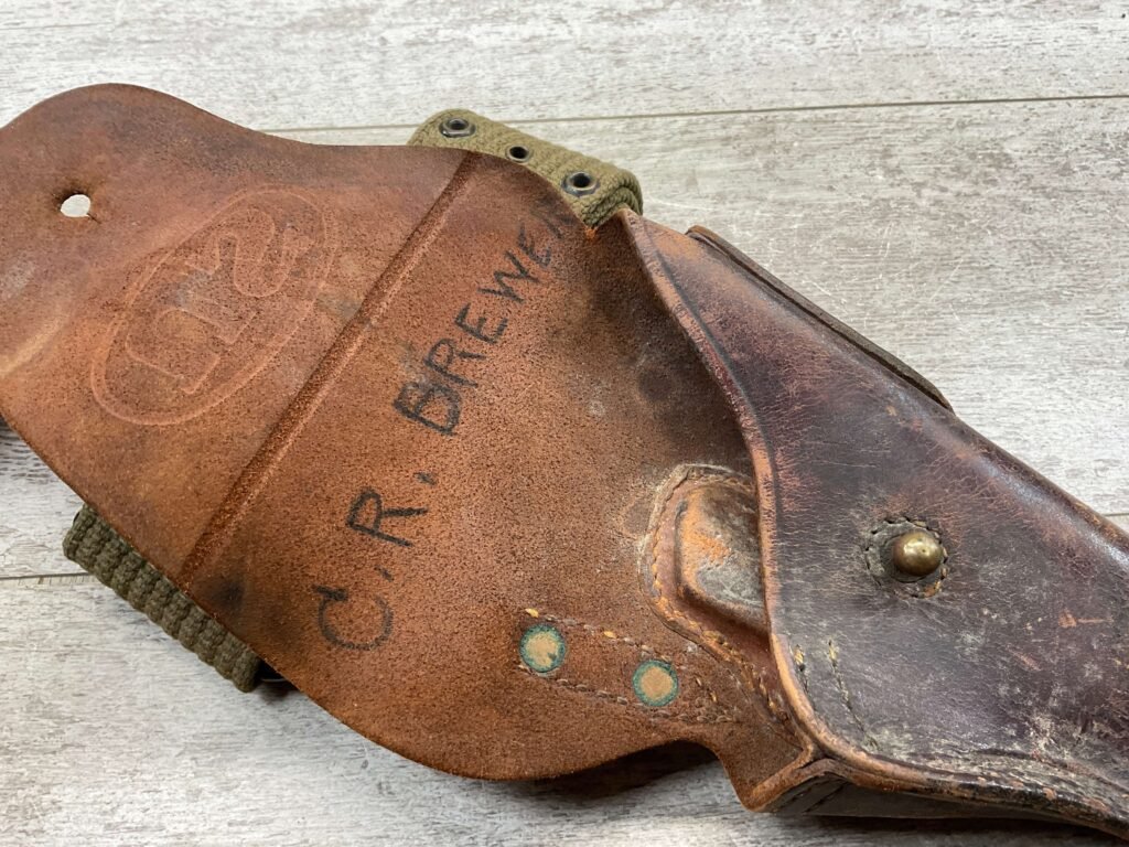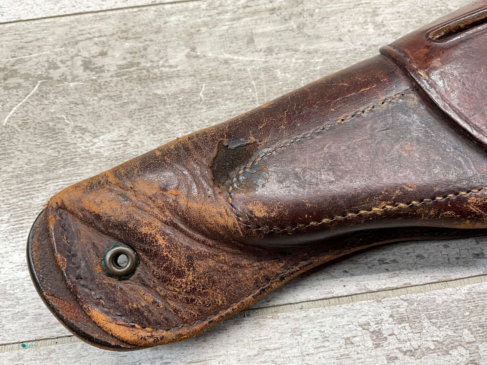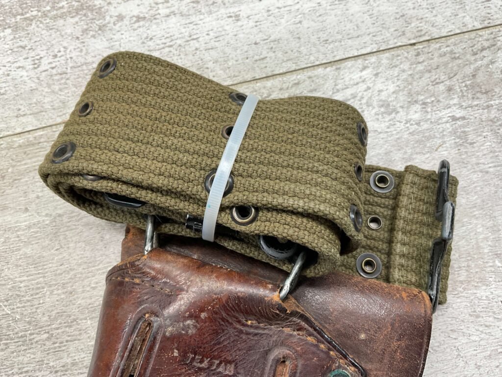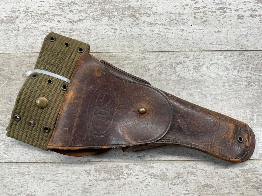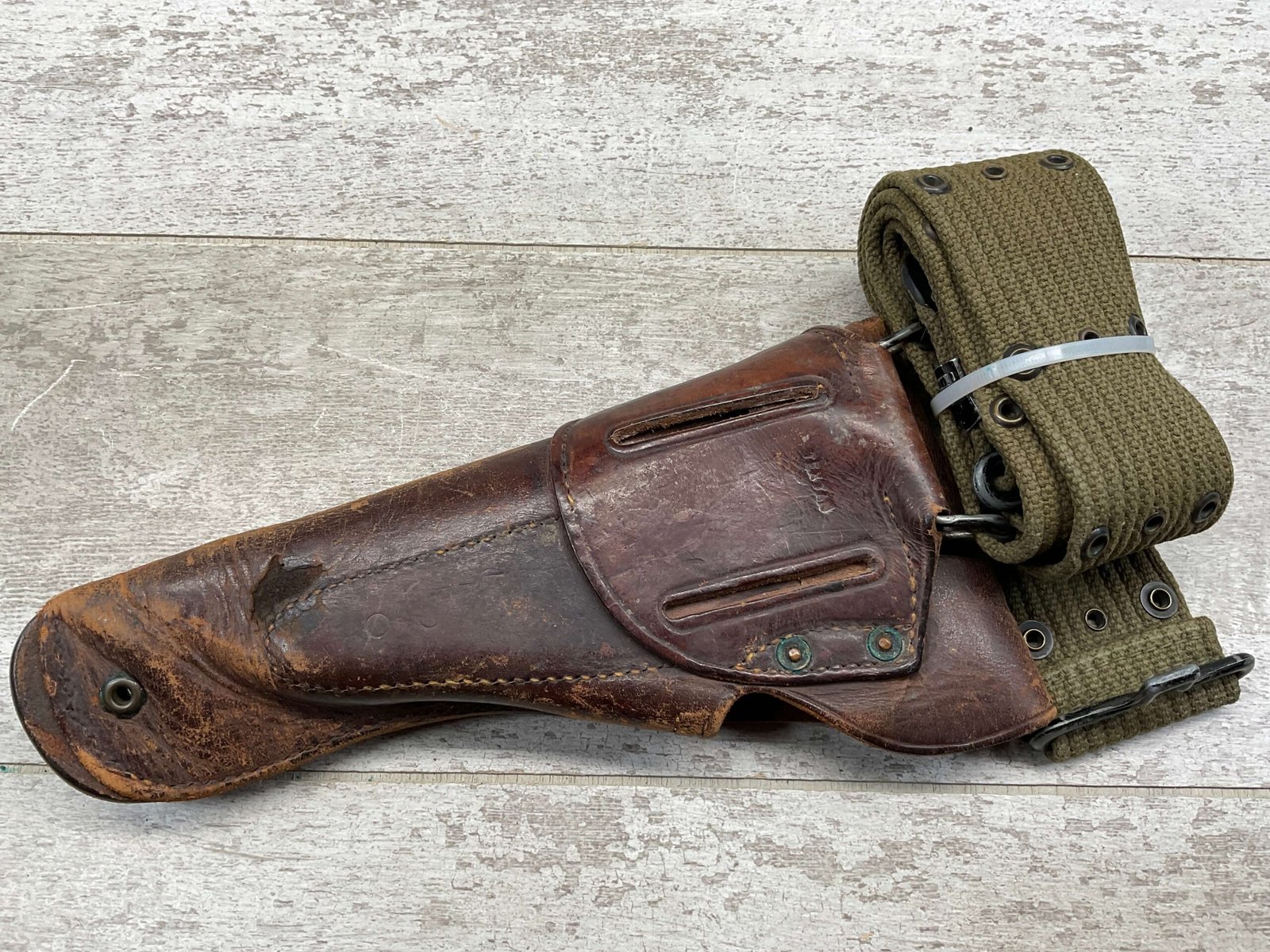 WWII TEX TAN 1911 BROWN LEATHER HOLSTER W/ BELT, LIGHT WEAR FROM USE, NO LEG TIE, “US” EMBOSSED FLAP, EXC U.S. MARKED BELT, VG-EXC CONDITION