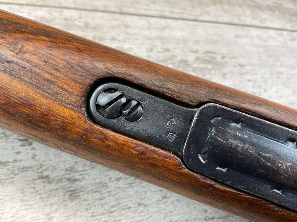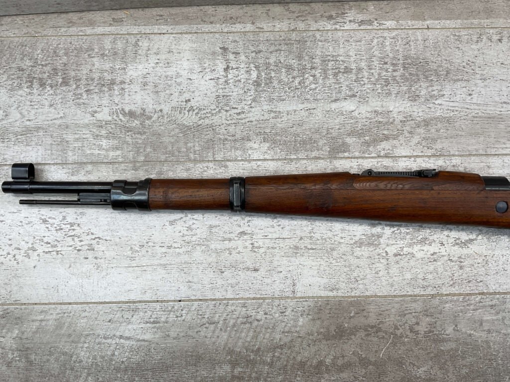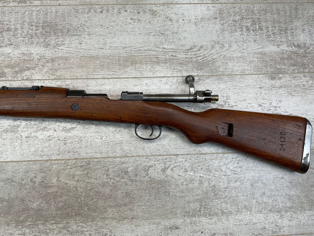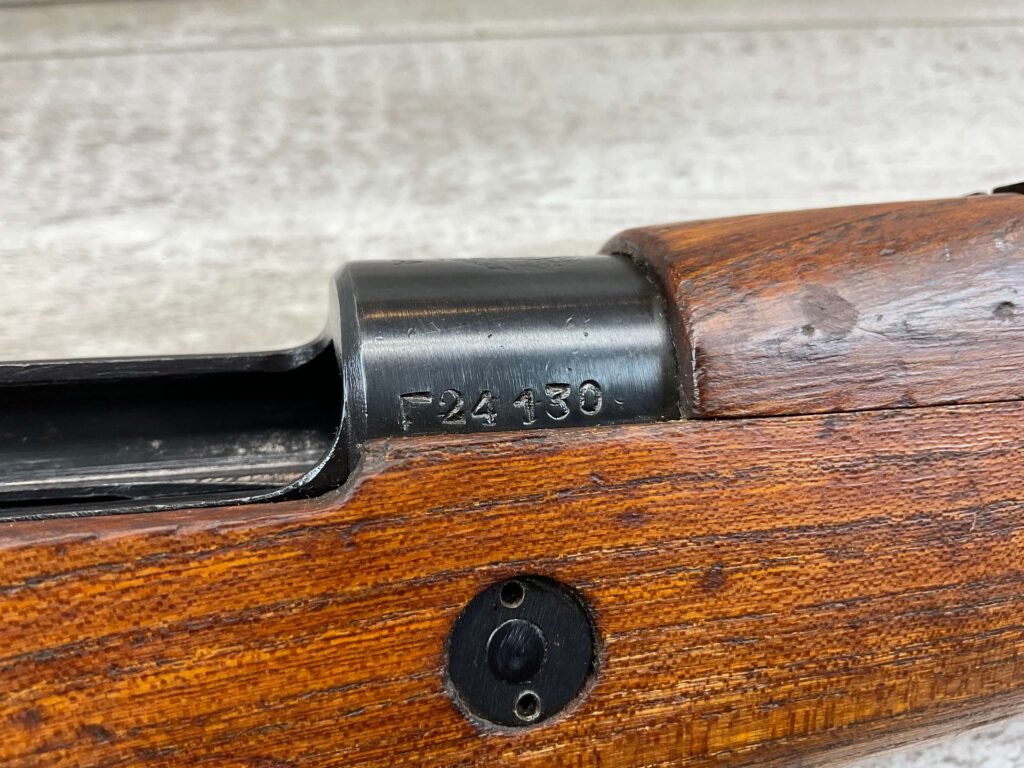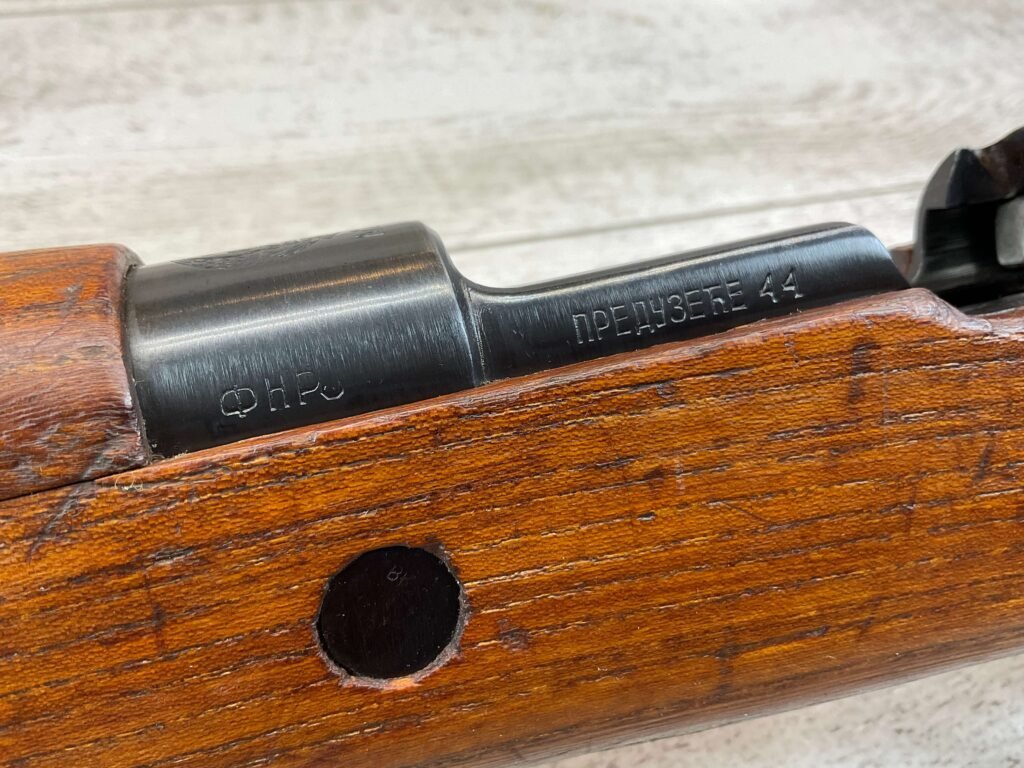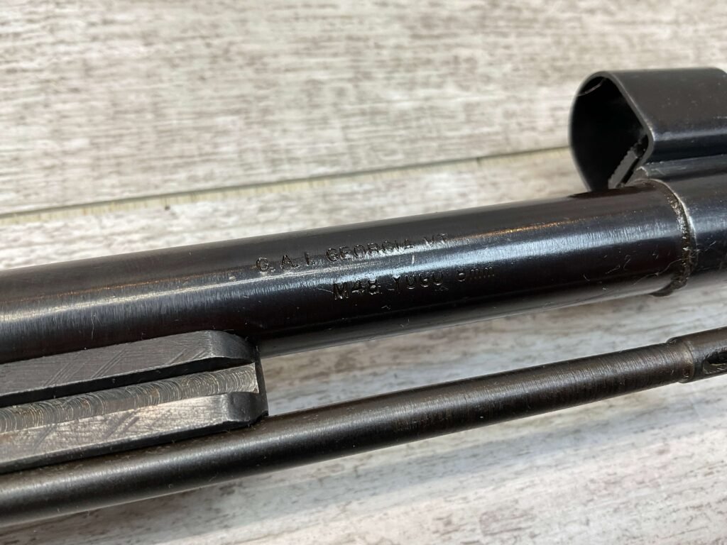 YUGO M48A 8MM BOLT ACTION SHORT RIFLE #r 24130, 8MM MAUSER, MANUFACTURED “RED FLAG FACTORY”, EVERYTHING MATCHES BESIDES THE BOLT, LIGHT CAI IMPORT MARK ON R SIDE OF BARREL, YUGO CREST ON TOP OF RECEIVER, PREDUZECE 44 STAMP ON LEFT SIDE OF RECEIVER, 23.5″ BARREL, EXC WOOD W/LIGHT NICKS & DINGS, 95% BLUE, 5 ROUND CAPACITY, FRONT SIGHT HOOD, BAYO LUG, CLEANING ROD, STEEL BUTTPLATE, BRIGHT BOREÂ W/EXC RIFLING & SCATTERED PITTING THROUGHOUT, 95% OVERALL