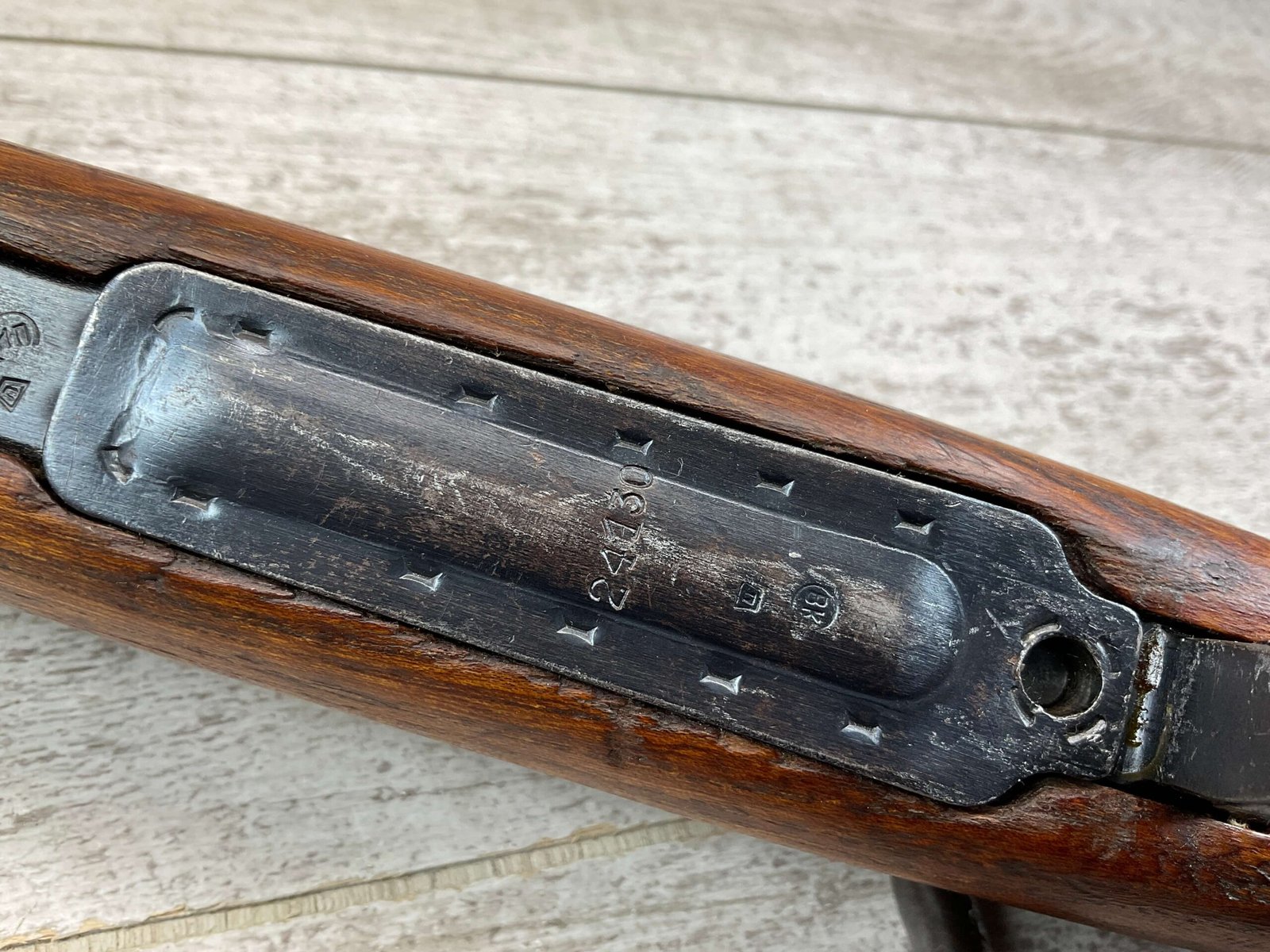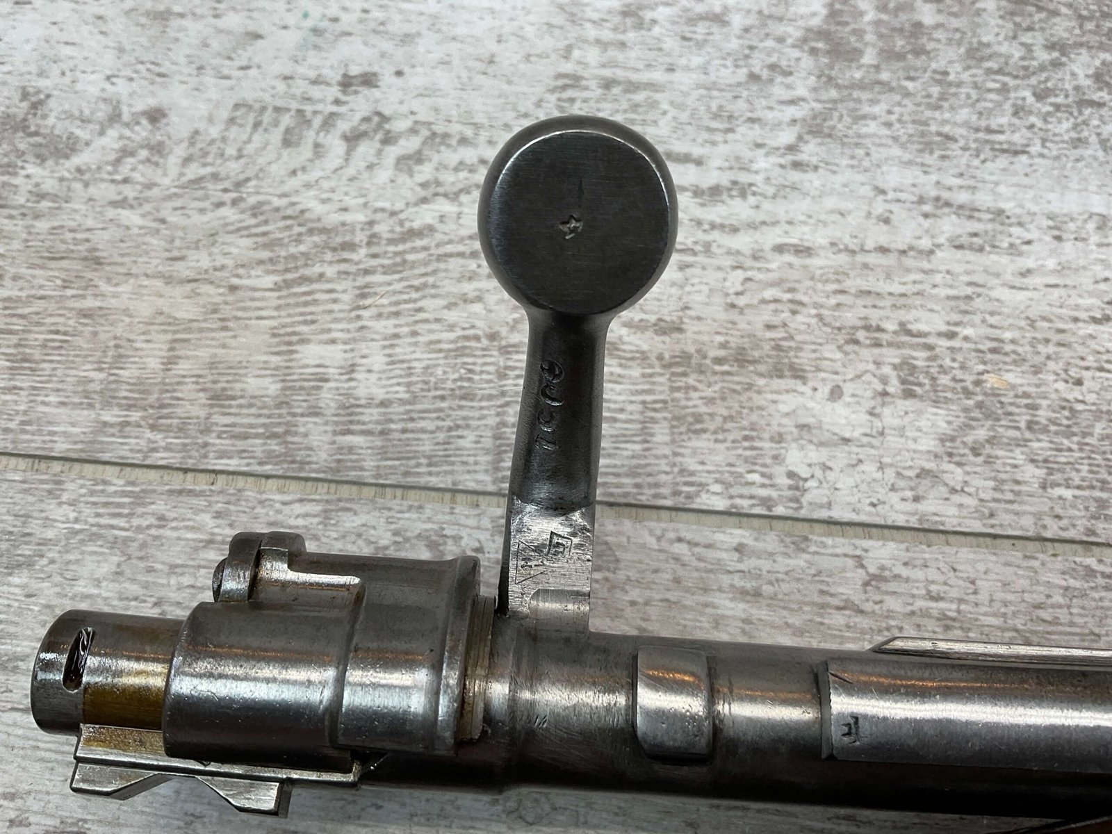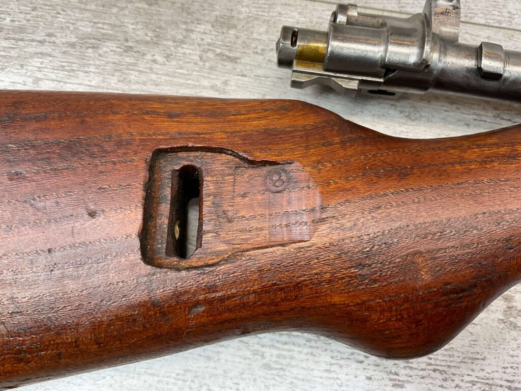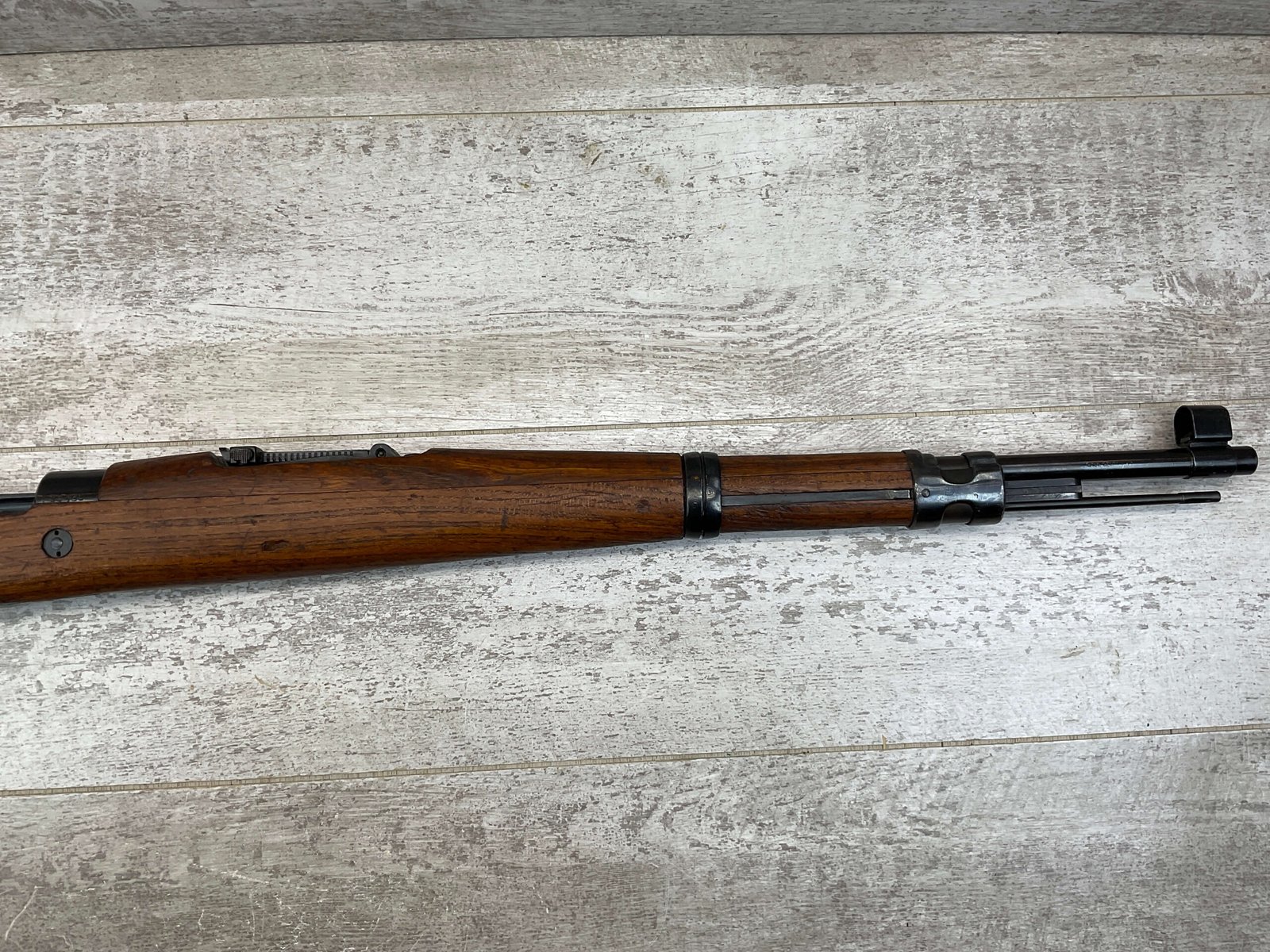 YUGO M48A 8MM BOLT ACTION SHORT RIFLE #r 24130, 8MM MAUSER, MANUFACTURED “RED FLAG FACTORY”, EVERYTHING MATCHES BESIDES THE BOLT, LIGHT CAI IMPORT MARK ON R SIDE OF BARREL, YUGO CREST ON TOP OF RECEIVER, PREDUZECE 44 STAMP ON LEFT SIDE OF RECEIVER, 23.5″ BARREL, EXC WOOD W/LIGHT NICKS & DINGS, 95% BLUE, 5 ROUND CAPACITY, FRONT SIGHT HOOD, BAYO LUG, CLEANING ROD, STEEL BUTTPLATE, BRIGHT BOREÂ W/EXC RIFLING & SCATTERED PITTING THROUGHOUT, 95% OVERALL